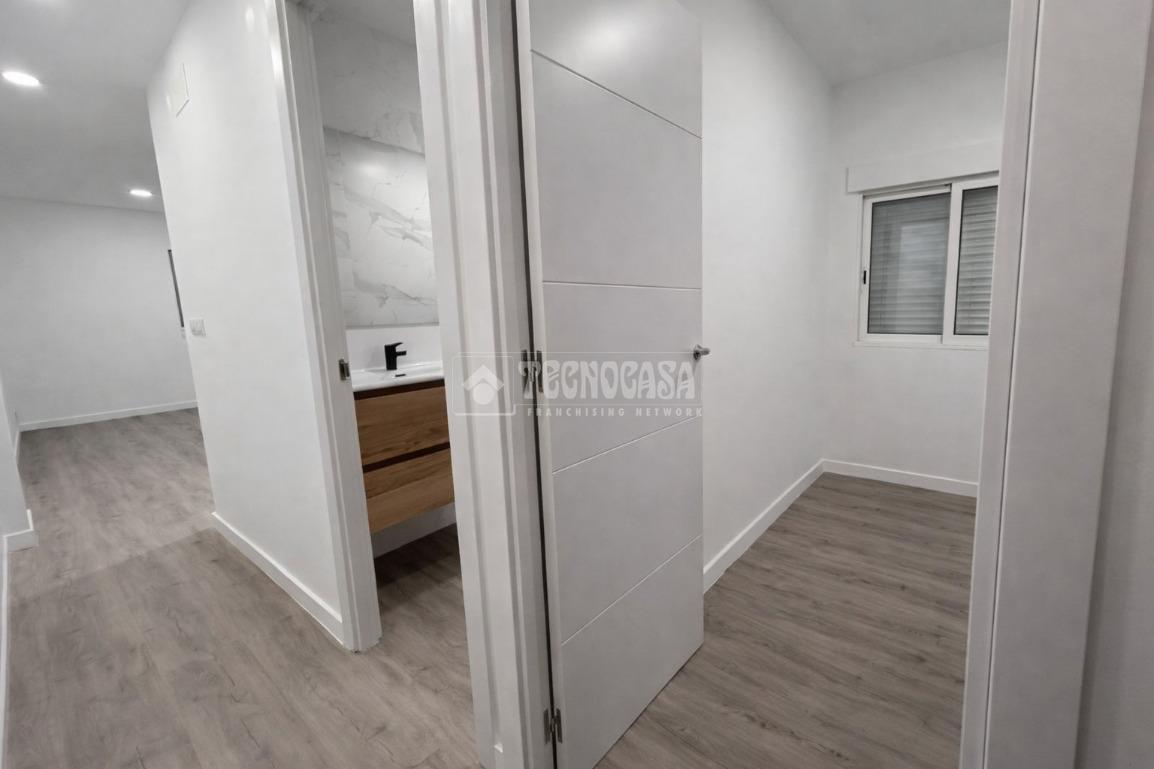 Los espacios están muy bien aprovechados al tener poco pasillo que acaba abriéndose para dar paso al salón-cocina.