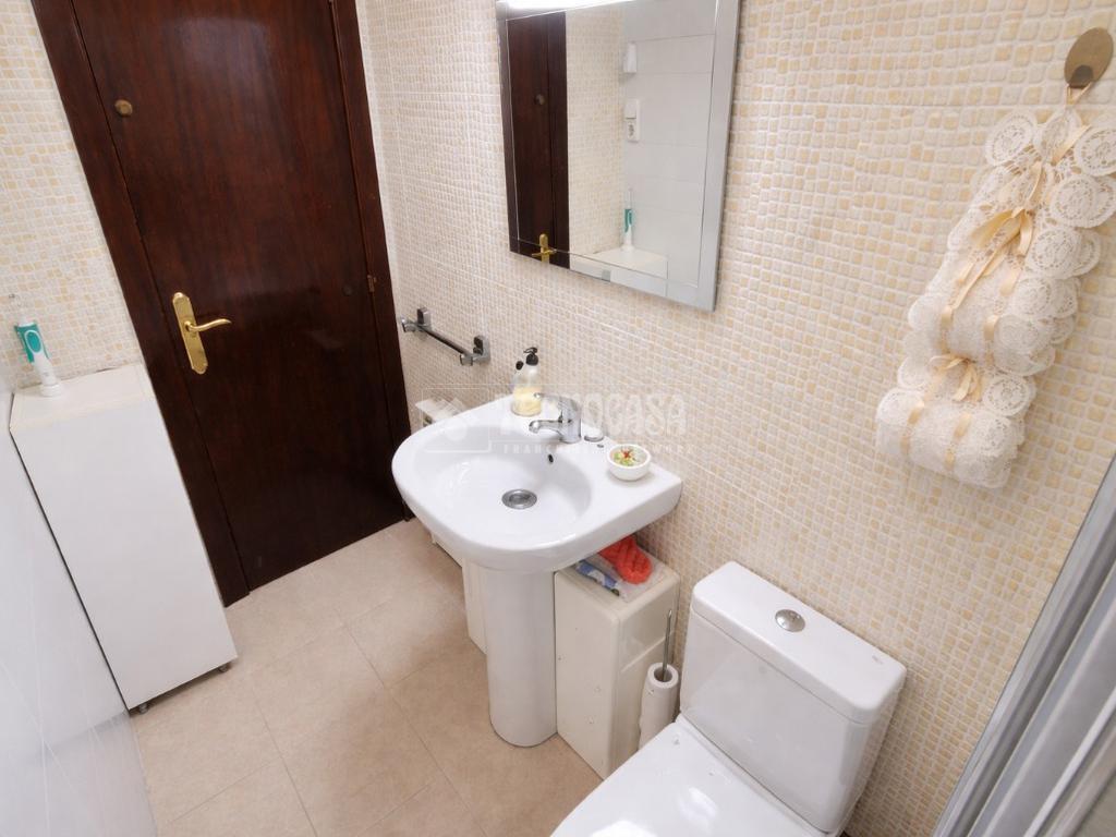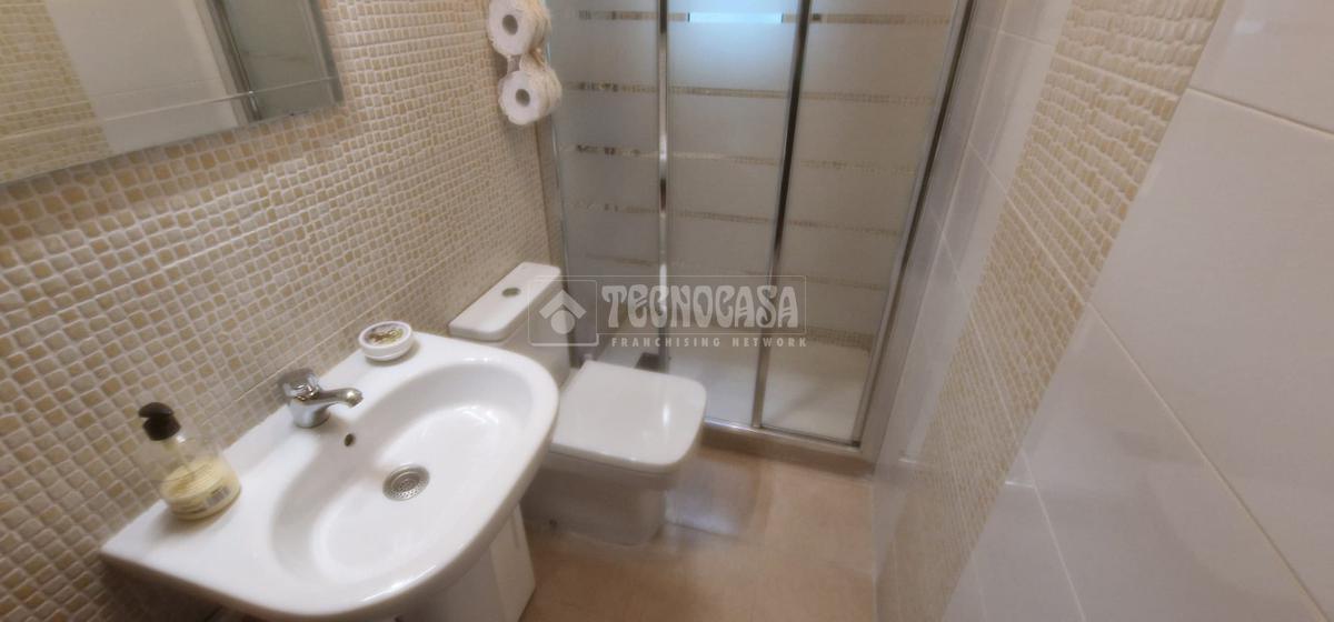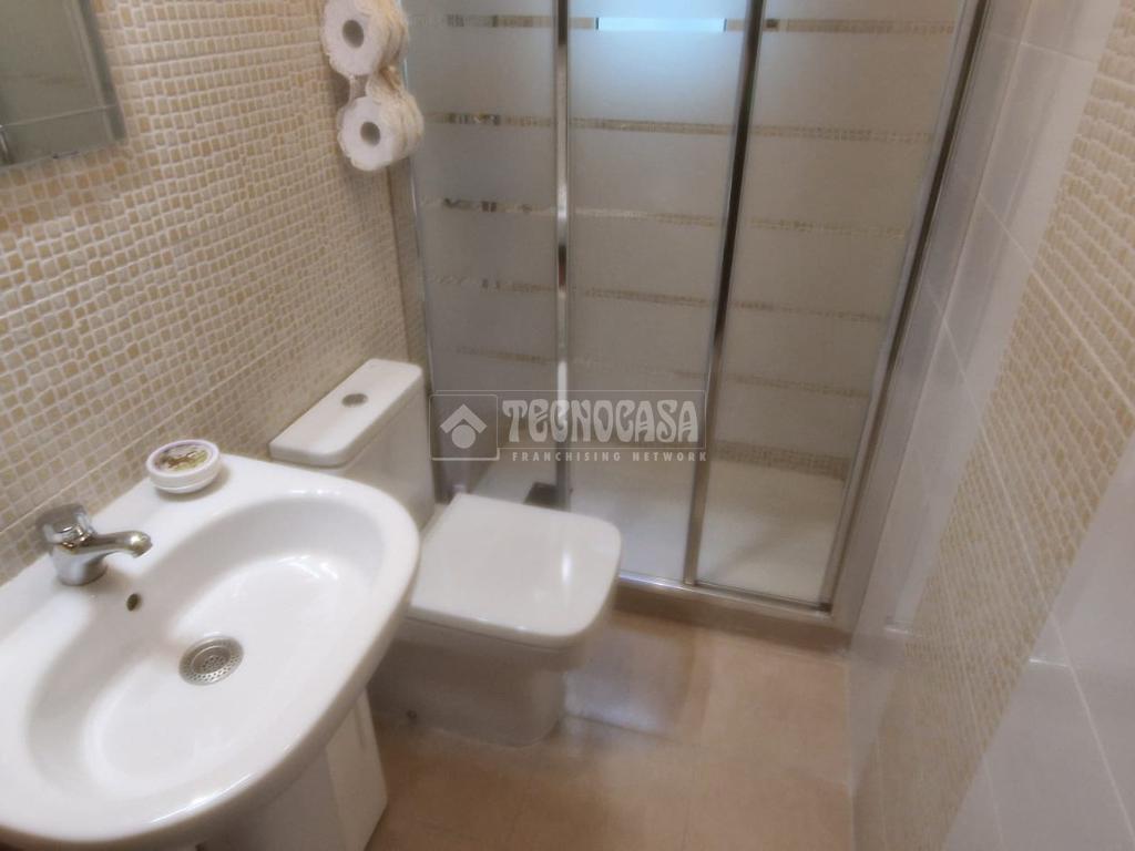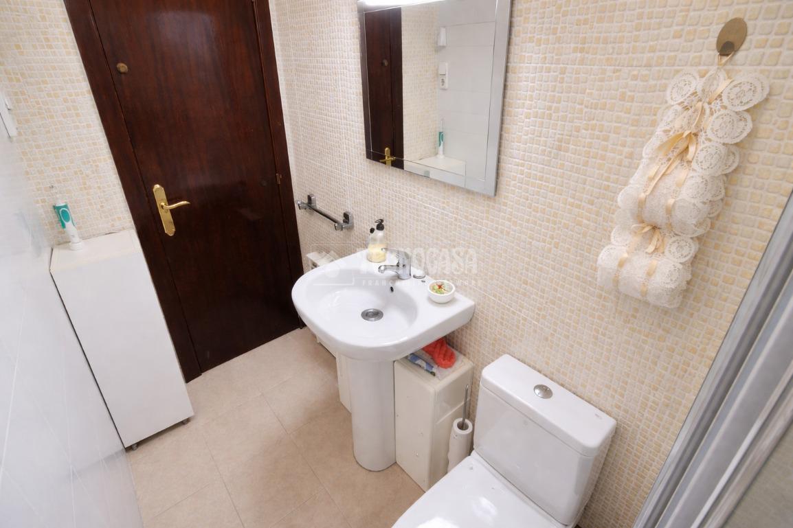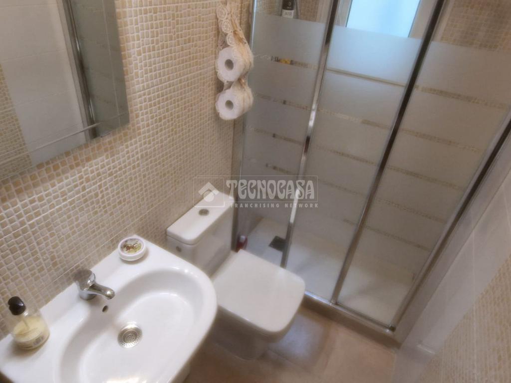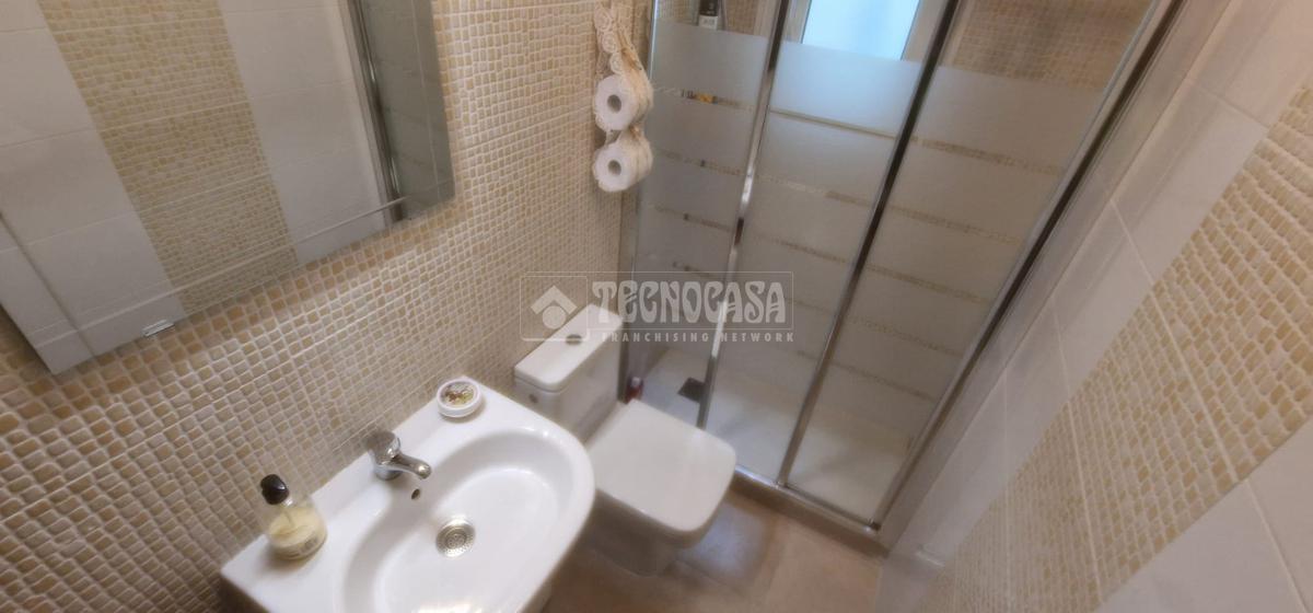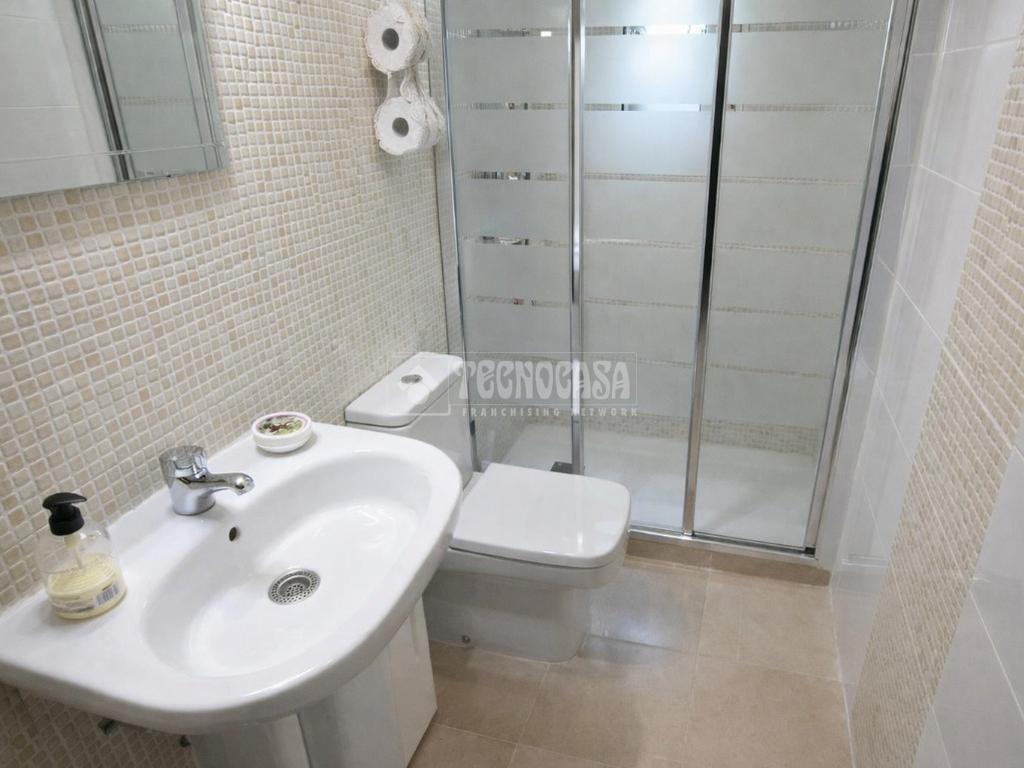 Baño completamente reformado con amplio plato de ducha con mampara de puerta corredera y perfil en aluminio cromado. Dispone de ventana para facilitar una buena ventilación. Las paredes del baño de baldosines tipo mosaico en un lado y en el otro combinados con amplias baldosas rectangulares que le dan un toque de modernidad.